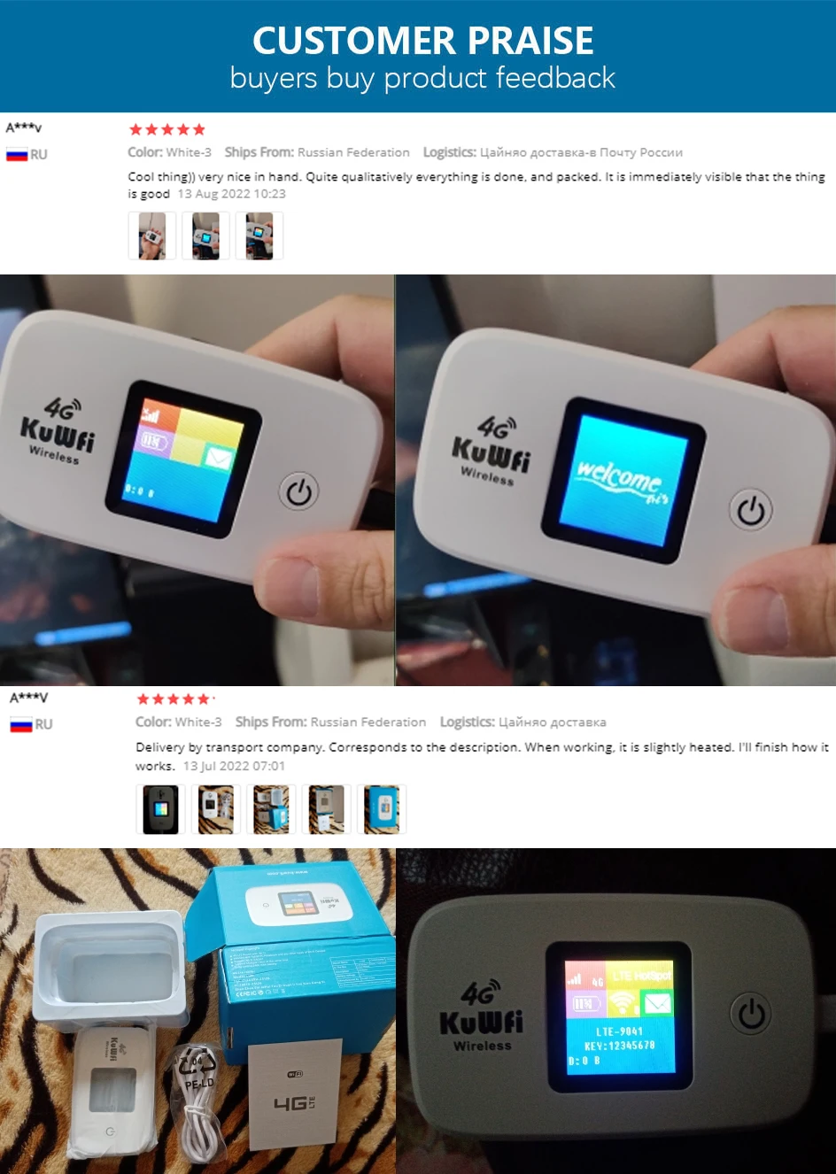 Доставили быстро(2 недели). Упаковано хорошо, всё без повреждений. Первый день - пока работает вроде хорошо, пришлось поковыряться в настройках - не захотел сам найти мобильную сеть к которой подключиться (карточка Киевстар), но выставил вручную после поиска сетей и все заработало. Покупал в машину чтоб раздавать анлим с симки - покатаюсь будет видно что за зверь. Пока покупкой очень доволен.
