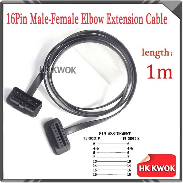 2014 плоский тонкий как лапша OBD2 16Pin ELM327 мужчин и женщин Локоть удлинитель светильник Высокое качество Бесплатная доставка