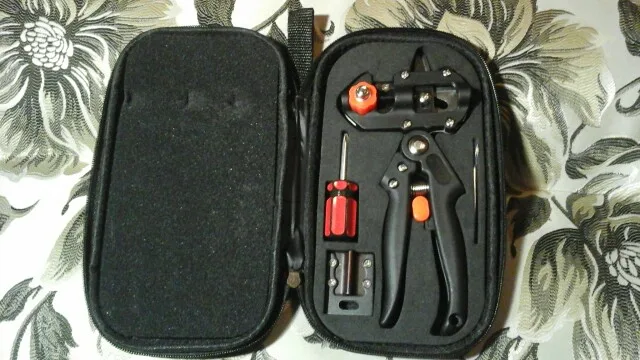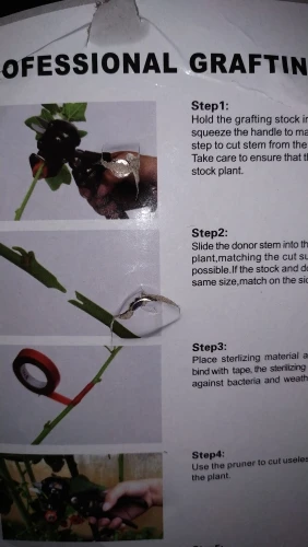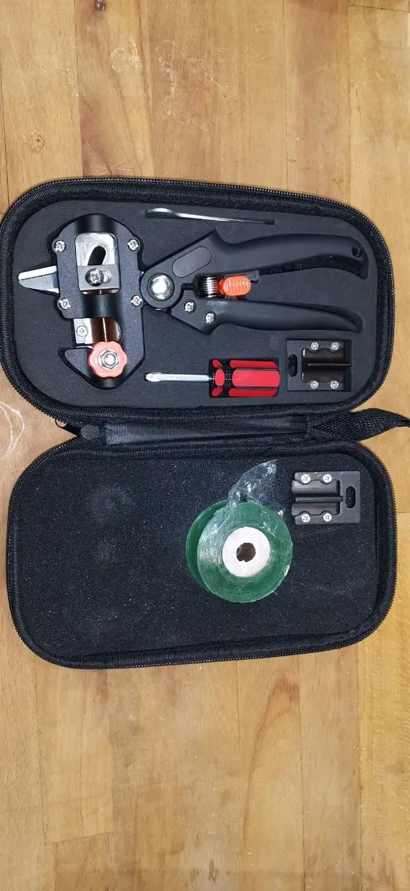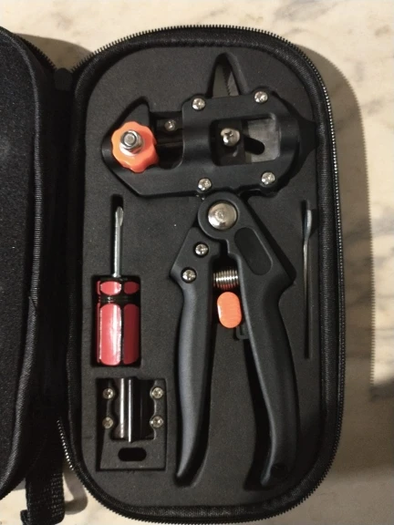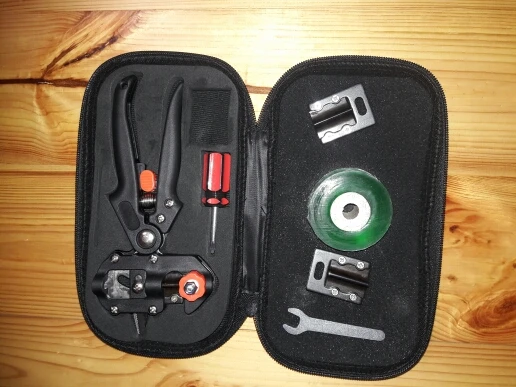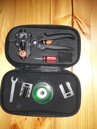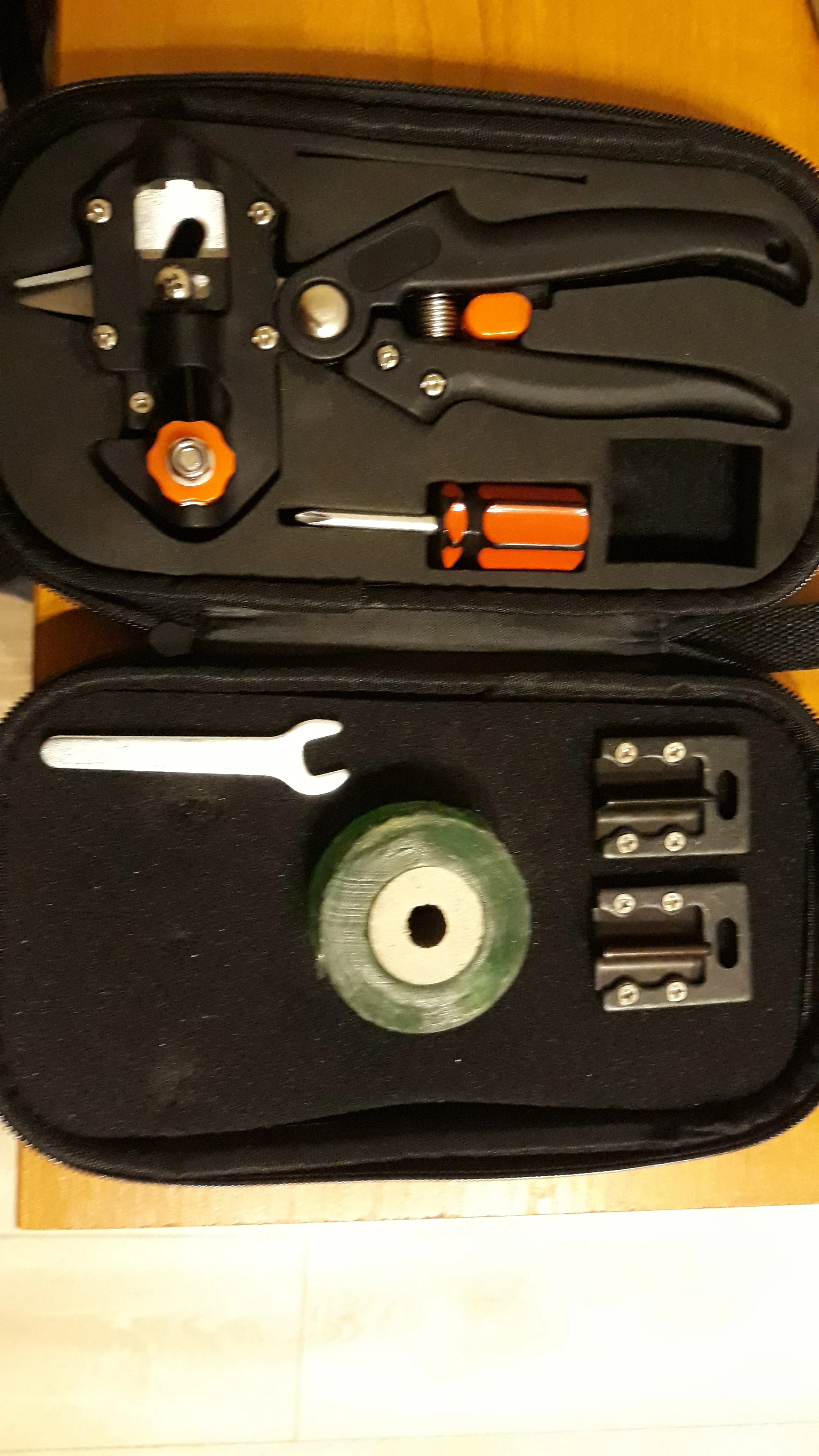 всё соответствует описанию и картинкам, в комплекте 3 ножа разной конфигурации реза. На мой взгляд лучший с омега профилем, он делает при резе замок который надежно фиксирует между собой половинки прививаемых растений