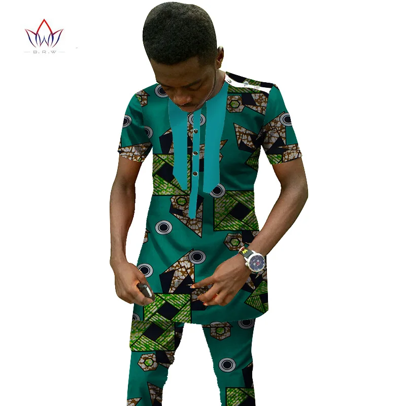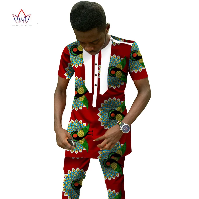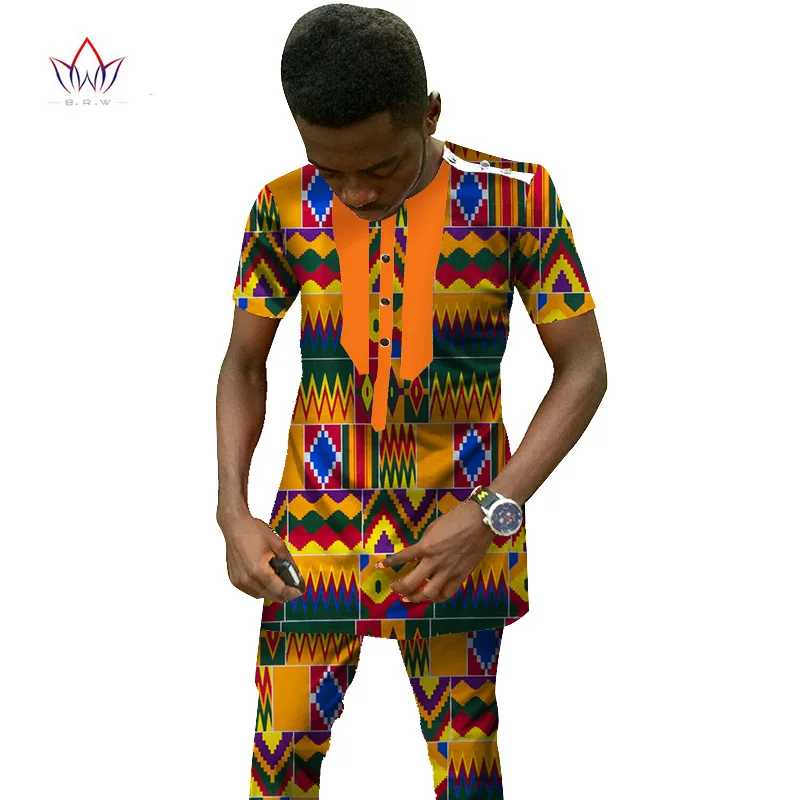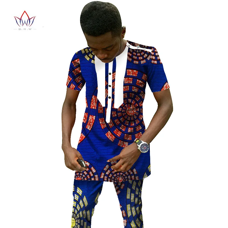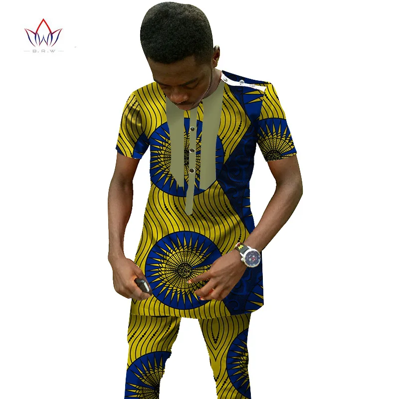 Традиционная африканская одежда мужской комплект короткий рукав воск топы и брюки Дашики Мода Анкары Африка одежда размера плюс 6XL WYN25