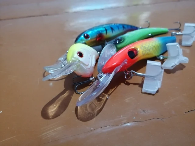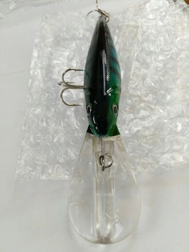 Хороший воблер. Огромная лопатка, заглубление полагаю будет 3-6 метра. Петли надо проклеить. Тройники на троечку, но для троллинга сойдёт. Цвет очень насыщенный.