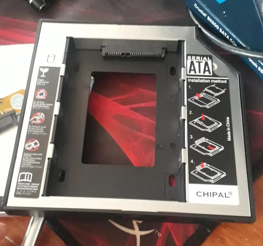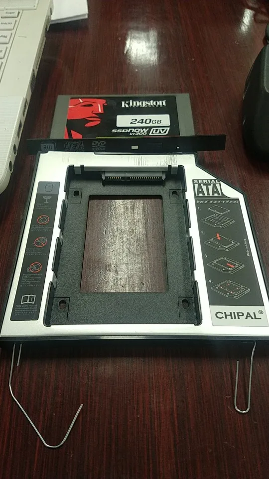 все вроде хорошо, но родную крышку от ноута прикрепить не получится, отверстия не совпадают, ну и танцы с бубном при установке в корпус ноутбука там где крепление оптического привода и разъема пришлось долго изголяться.