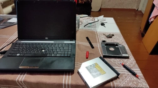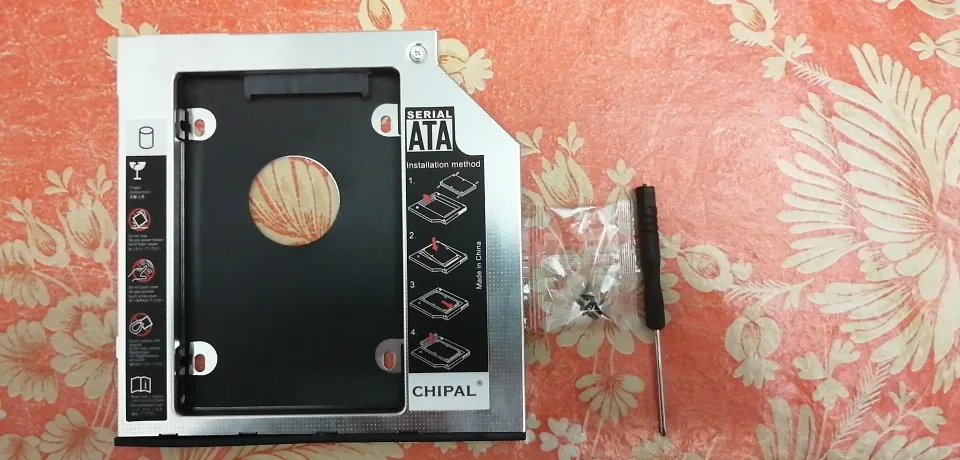 Идеально подошло для жёсткого диска ноутбука hp pavilian 15, встало вместо сд рома, в комплекте шурупчики крепления отвёртка, заглусюшку снял с сд рома и воткнул сюда, подошло, все супер, рекомендую
