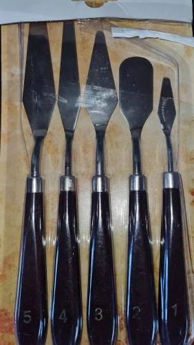 las espátulas tienen buena presencia y parecen de calidad, pero los mangos son de plástico, no de madera. creí que eran de madera cuando hice el pedido, pues creo haber leído que los mangos son de madera, espero que den buen resultado.