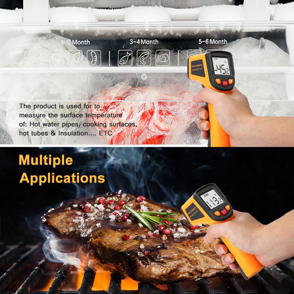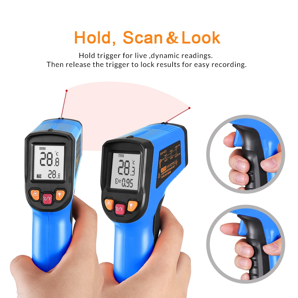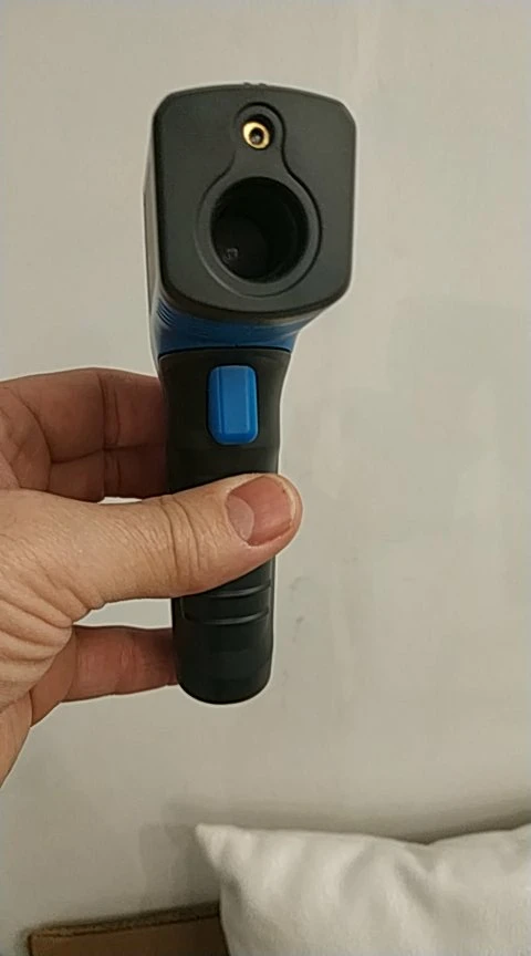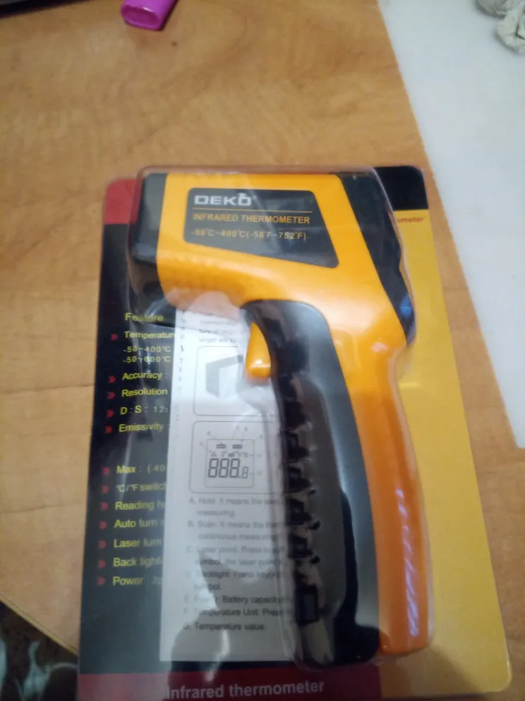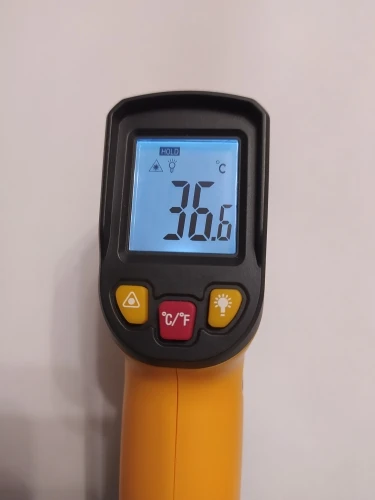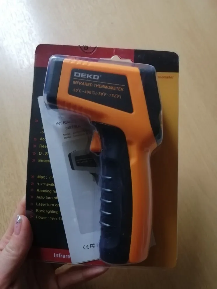 пирометр пришел в идеальном состоянии, упакован хорошо. замеры вроде адекватные, температуру тела в подмышке показывает 36-37 градусов Цельсия. работать просто, активируется примерно за 2 секунды, выключается сам после 10 секунд бездействия.на моем визуально луч лазера немного смещен от оси влево. это мой первый пирометр, прибором доволен.