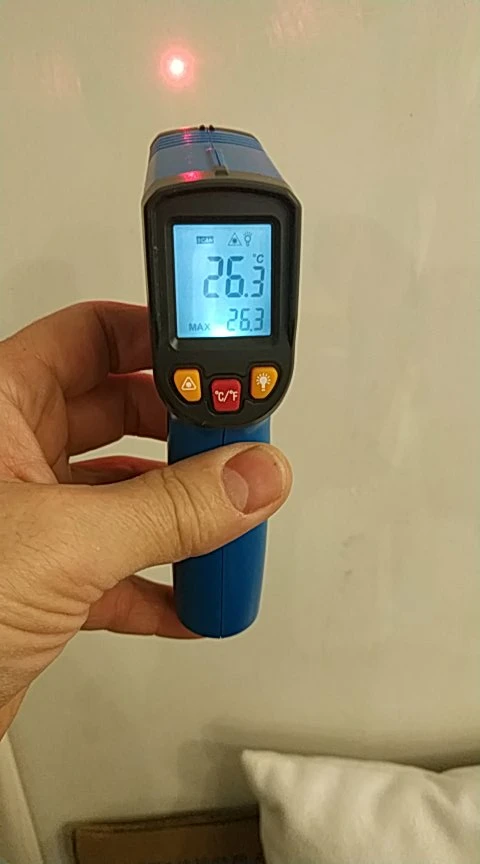 Во-первых, меряет кривовато, точность в лучшем случае 5-10 градусов, особенно к низу (-5 показывал как -15 а +24 как +19, но вверх тоже иногда немного привирает). Во-вторых, вообще не меряет гладкие глянцевые поверхности (особенно зеркальные, но не только - косячит сильно и на многих). В-третьих, привиредлив к батарейкам - разряжает не полностью, аккумы хавает только на 100% заряженные, недолго и не все. Короче, для редких и грубых измерений покатит, для частых и точных - нет.