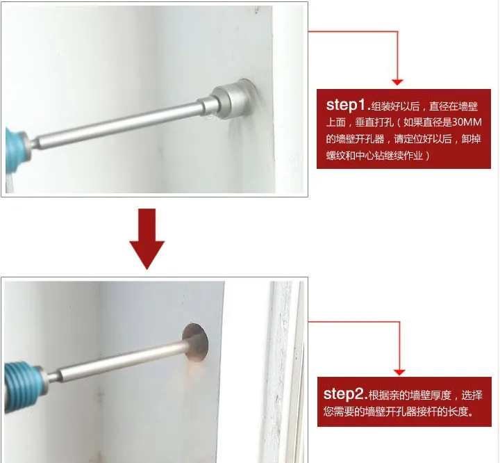 Применение:Используется для приспособления настенной кольцевой пилы от M22 до SDS PLUS для электромолотковой машины для открытия условного отверстия воздуха в кирпичной стене, отверстиях для труб и т. д.Внимание:Пожалуйста, сначала Просверлите отверстие 8 мм в стене перед использованием устройств к центральному отверстию, затем используйте отверстие в стене, чтобы избежать центра сверла, подключенного к чрезмерной силе, преждевременное ослабление
