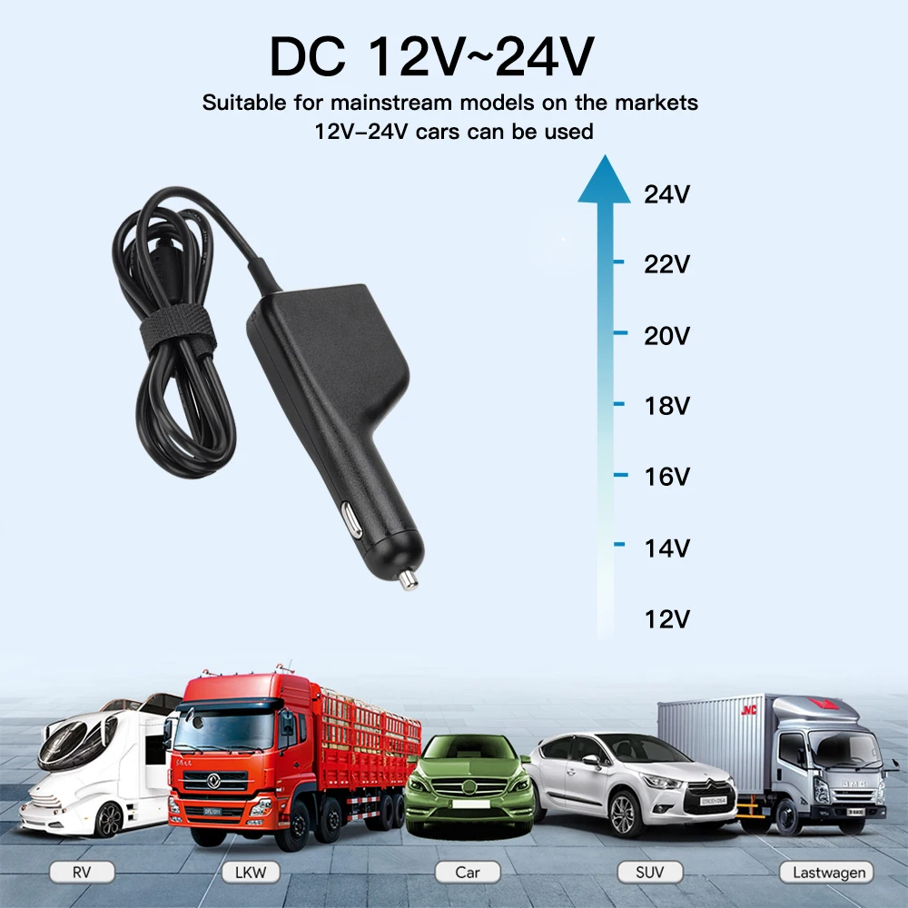 1. Интерфейс зарядки вашего ноутбука такой же, как показано на картинке2. Мощность прикуривателя вашего автомобиля 12V-24V3. Ваш ноутбук вольт 19,5 V4. Мощность вашего ноутбука не превышает 90 ВтВы можете проверить выходное напряжение и выходной ток на этикетке вашего оригинального зарядного устройства или нижней/задней части ноутбука.V стоит для вольт и A стоит для амперВатт = Ампер х вольт