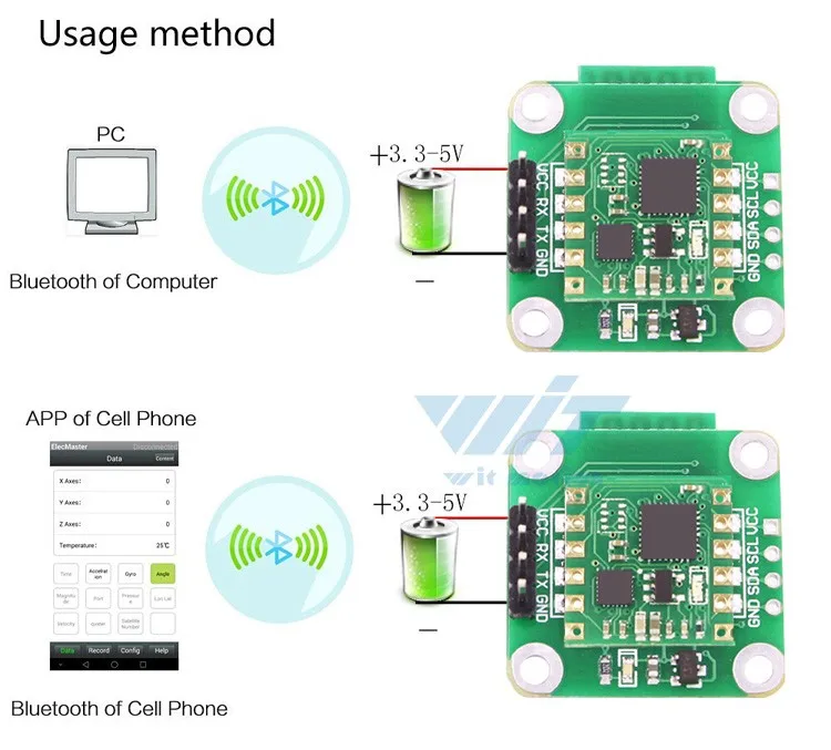 9-осевой датчик WitMotion Bluetooth 7. 0 BWT901, MEMS, фотомагнитный угол наклона + ускорение + гироскоп + магнитное поле на AndroidПК