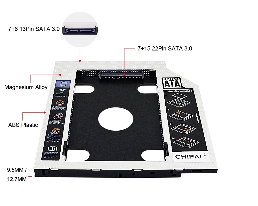 Универсальный корпус CHIPAL для второго жесткого диска SATA 3,0, 12,7 мм, 9,5 мм в 2,5 дюйма, 2 ТБ, SSD, HD HDD, чехол со светодиодным индикатором для ноутбука, CD-ROM, DVD-ROM