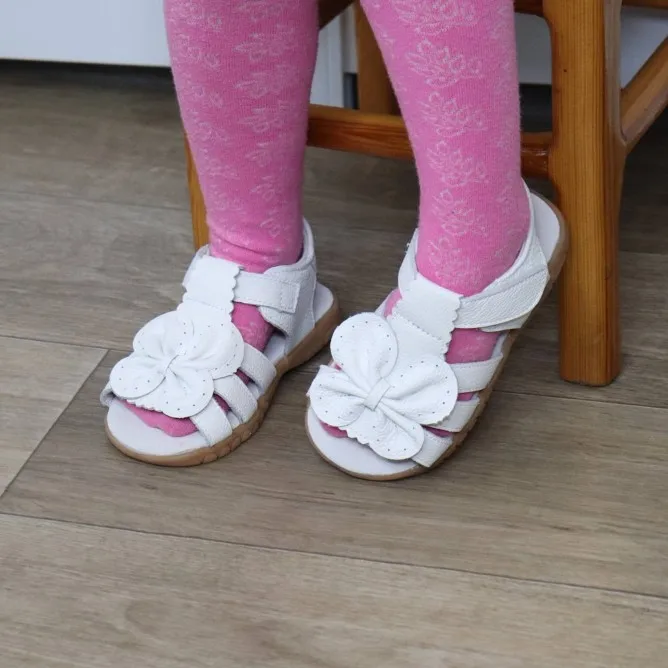 2019 новые сандалии из натуральной кожи для девочек; Белые летние туфли для прогулок с противоскользящая подошва-бабочкой; Стелька для детей ясельного возраста 12,3-18,3