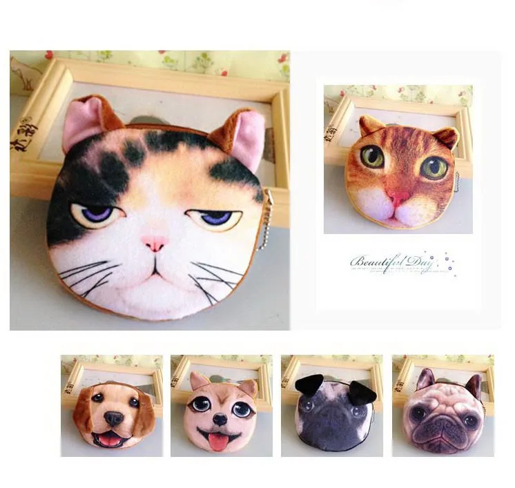 30 шт.лот мини-кошелек с лицом милого кота и собакисумка для хранения в виде животногомультяшный кошелекмаленькая плюшевая сумка для монет