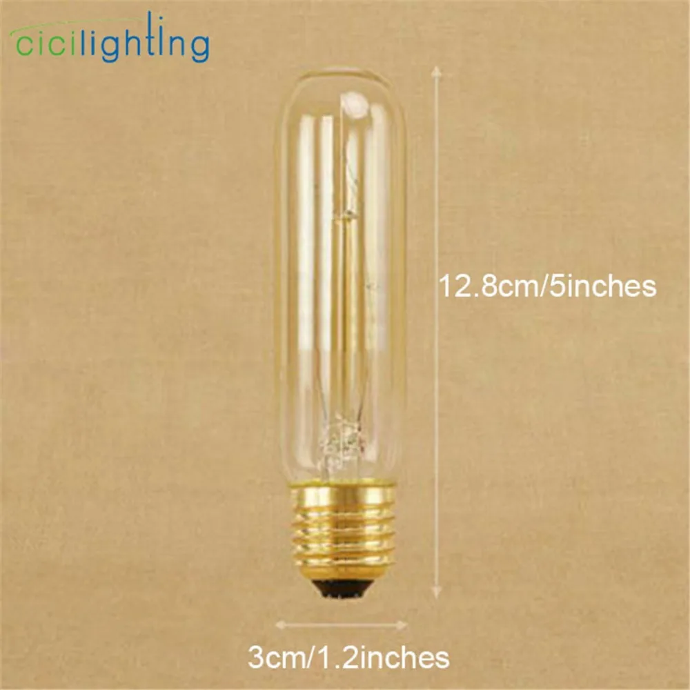 220 В 240 в 40 Вт E27 лампа Эдисона T10 T125 винтажная Ретро короткая испытательная трубчатая лампа накаливания Вольфрамовая Лампа для антикварной лампы