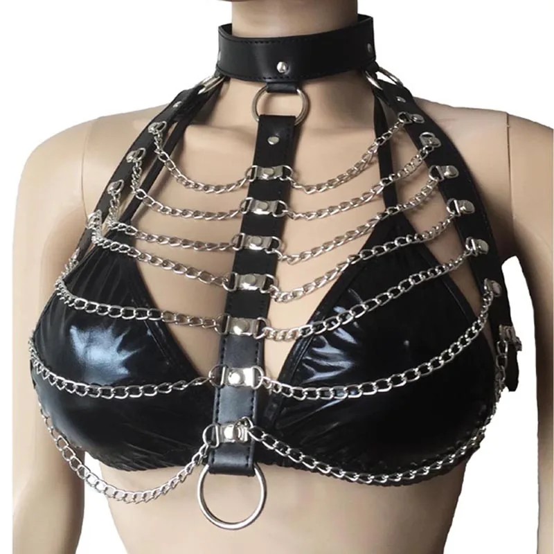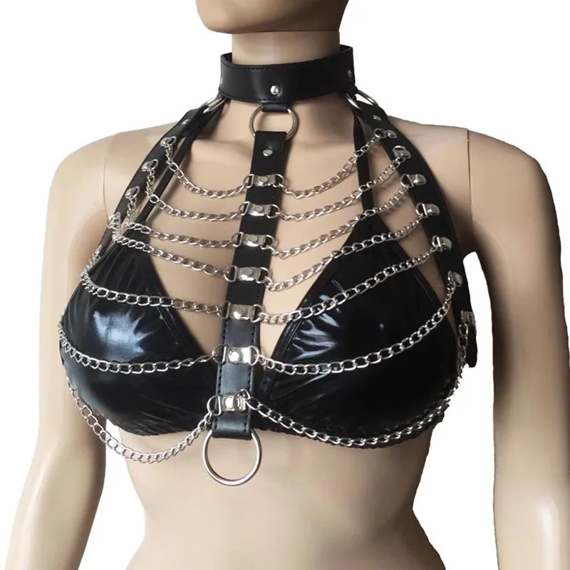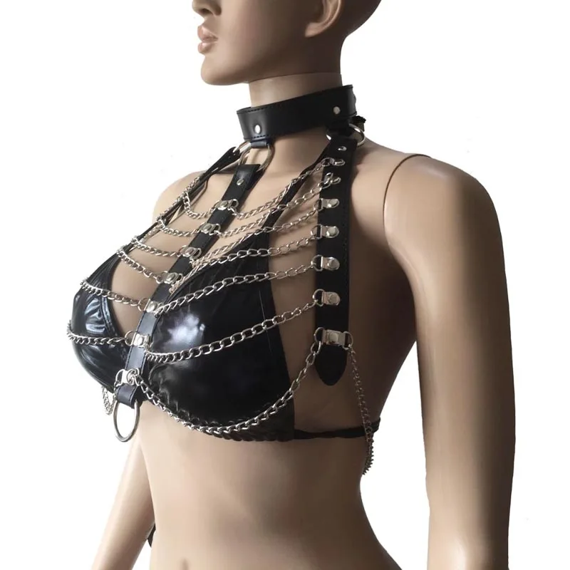 Женский сексуальный бюстгальтер на бретельках, с застежкой-цепочкой, черный эротический костюм для дискотеки и рок