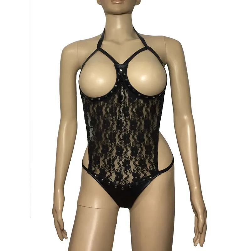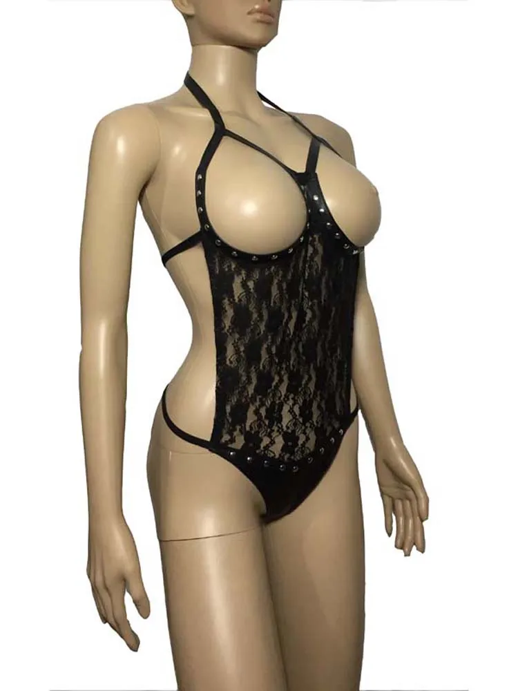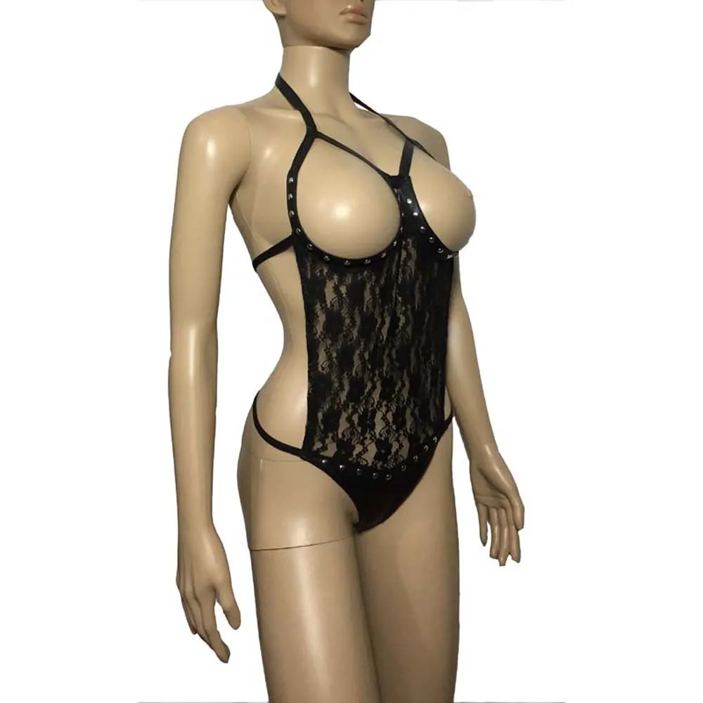 Женские сексуальные кружевные стринги из искусственной кожи без чашек трико бикини с открытой спиной боди Фетиш Эротическое Нижнее белье Тедди