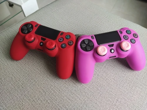 Чехол и лапки на стики очень понравились, цвет менее яркий чем на картинке, но это не делает геймпад менее симпатичным. Увы у меня версия геймпада такая что не позволяет подобрать новый пластмассовый корпус в другой расцветке, поэтому очень спасло то что можно выйти из положения так. Заказ пришёл по нынешним меркам быстро за 14 дней примерно. Единственный минус не поставить на зарядку та что с куллером, где вертикально стоит ps4 так что заряжать только проводом. Немного отвлекают стыки между верхом и низом, но опять таки цена всё уравновешивает. На стики лапки классные единственное поворачиваются туда сюда, но на игре не сказывается. Муж говорит меньше стал угол вращения стика в некоторых местах что лучше лапку на левый тк правым чаще пользуется игрок. Главное что мне всё нравиться ❤.