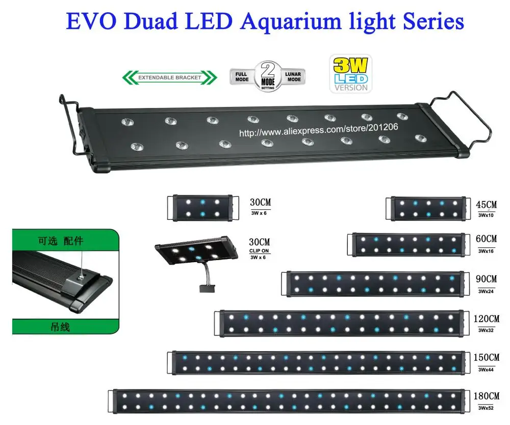 Морская версия:Приспособление поставляется с 7x10000K белый 3 Вт светодиодный s и 3x Actinic синий 460nm 3 Вт светодиодный s отлично подходит для морских, рифовых и цихлидных аквариумов. Используйте светодиодный индикатор мощностью 10000K белого цвета в течение дня, а светодиодный индикатор Actinic Blue 460nm в ночное время.