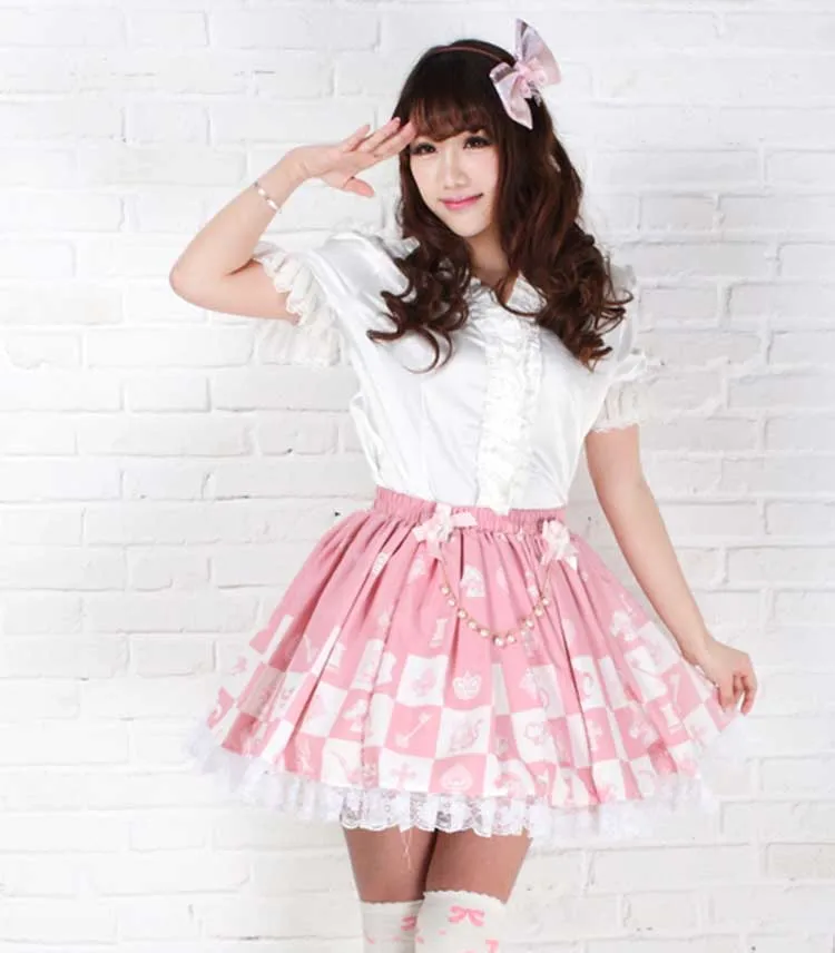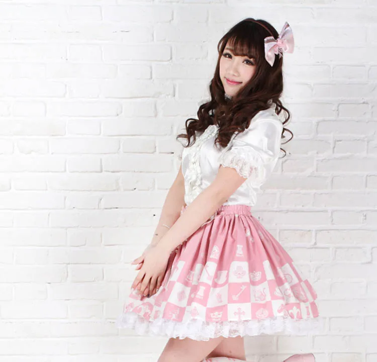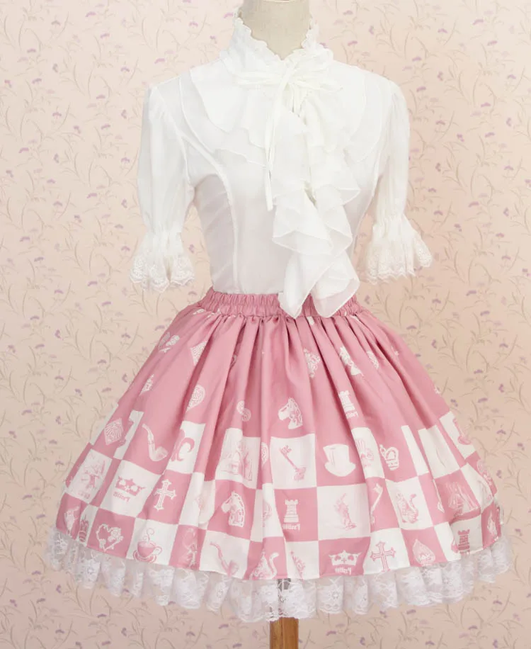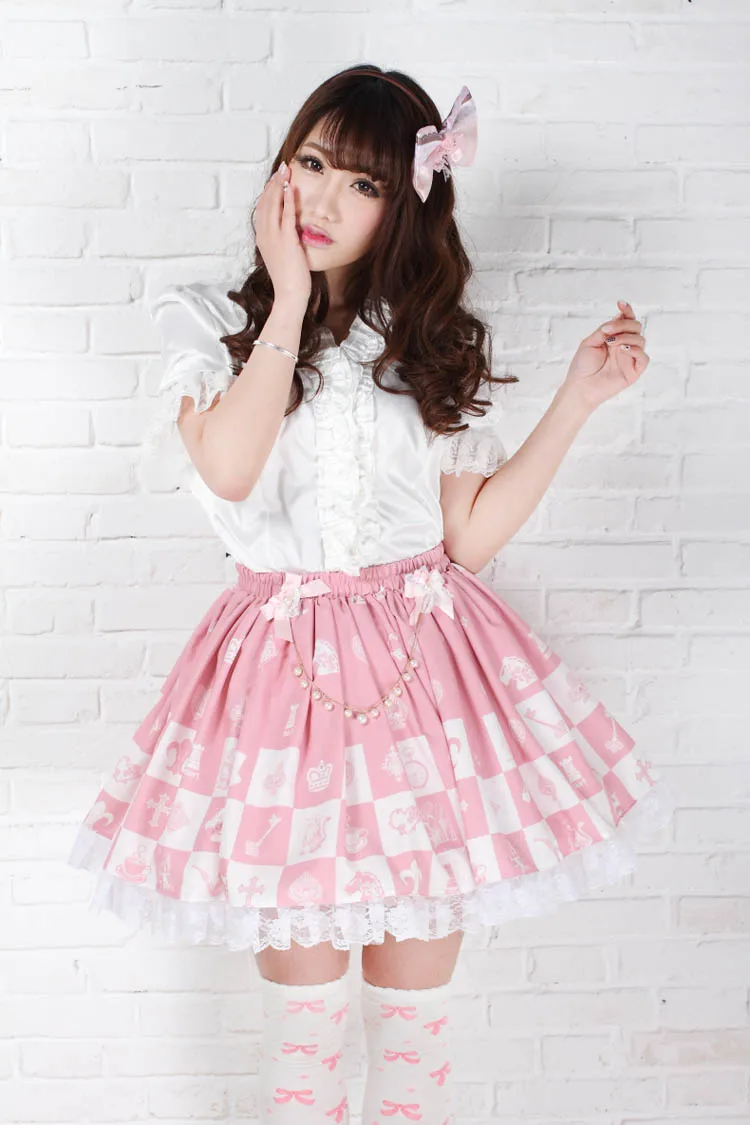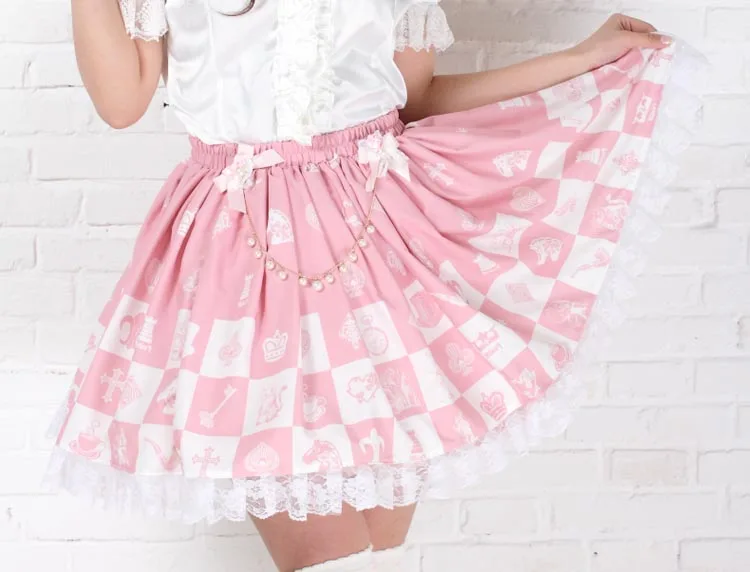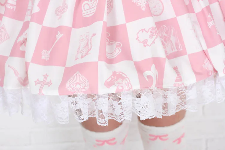 Милая розовая Шахматная юбка Lolita в клетку с принтом принцессы Алисы плиссированная юбка Лолиты с цепочкой бесплатная доставка