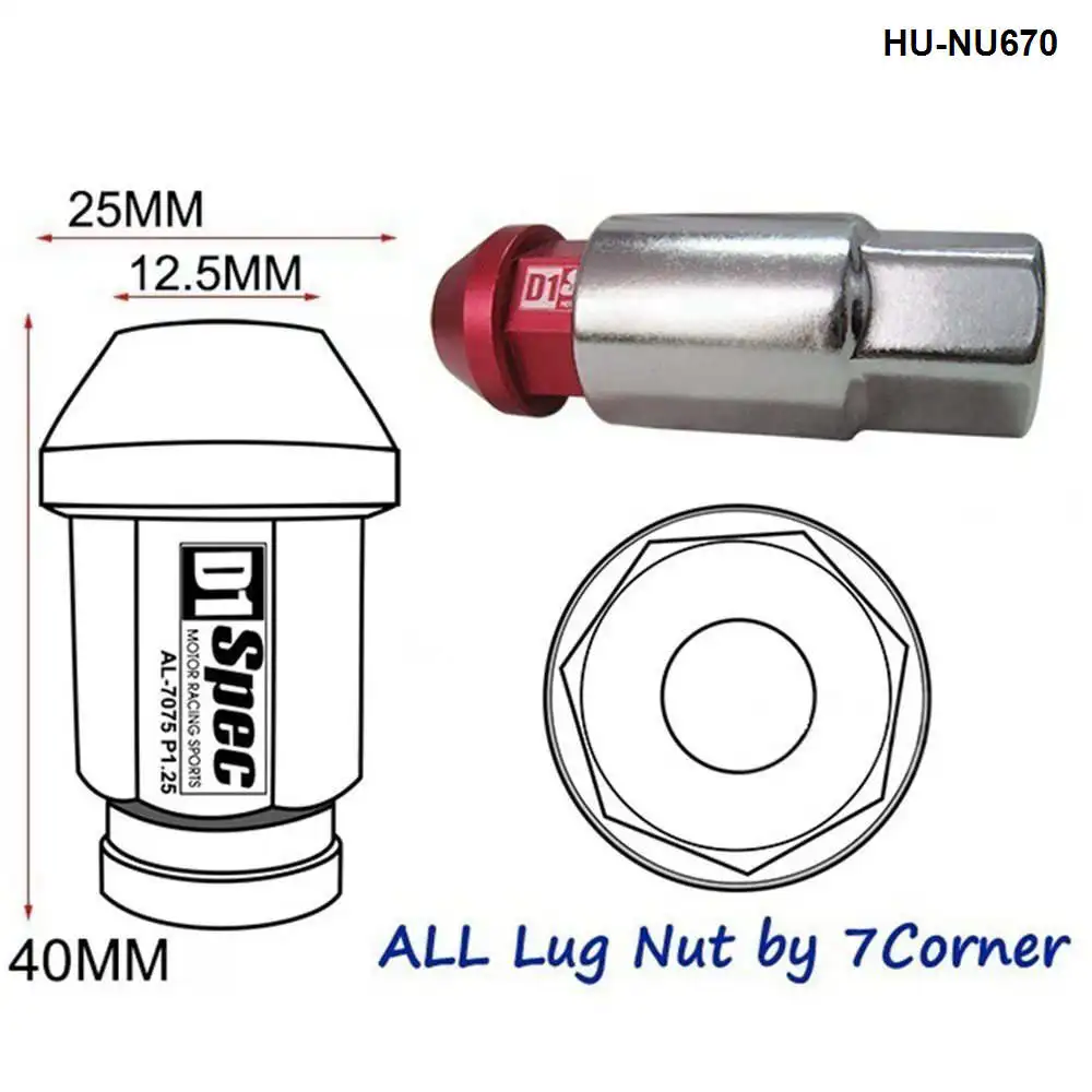 D1 Spec M12X1.25 / M12X1.5,L : 40 мм 20 шт расширенные Алюминиевые гайки для Nissan Subaru Suzuki и т. Д. С замком HU-NU670