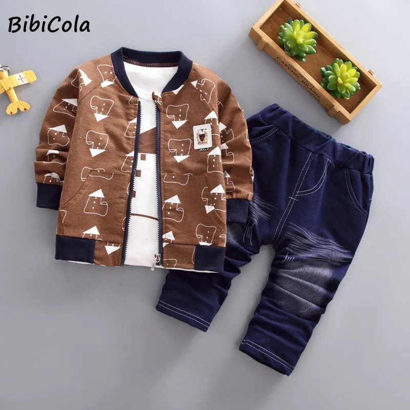 BibiColaВесенний комплект одежды для маленьких мальчиков, Осенний детский спортивный костюм для мальчиков комплект одежды из 3 предметов: куртка + штаны Одежда для мальчиков