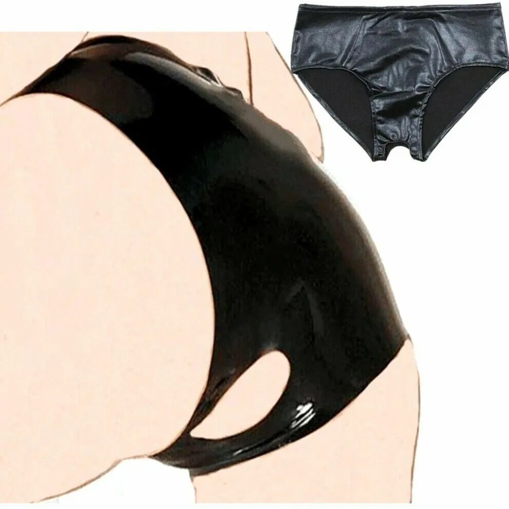 Женские Эротические трусики из искусственной кожи с открытой промежностью, нижнее белье, стринги, фетиш, сексуальные фэнтезийные блестящие латексные трусики