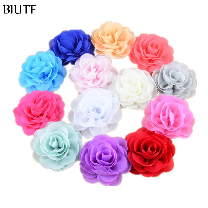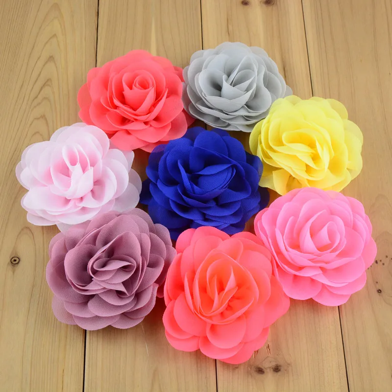 200 шт.лот оптовая продажа 3,15 дюймовая шифоновая шелковая розетка Цветы для девочек повязки на голову одежда аксессуары сделай сам FH28