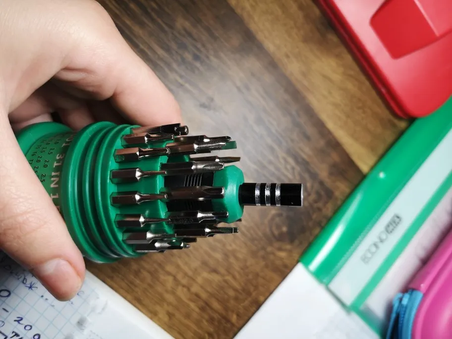 Отвертка маленького размера, ну и насадки все соответственно. Но качество за эту цену прекрасное. Будет служить для раскрутки мелких вещей, типа наручных часов и тд