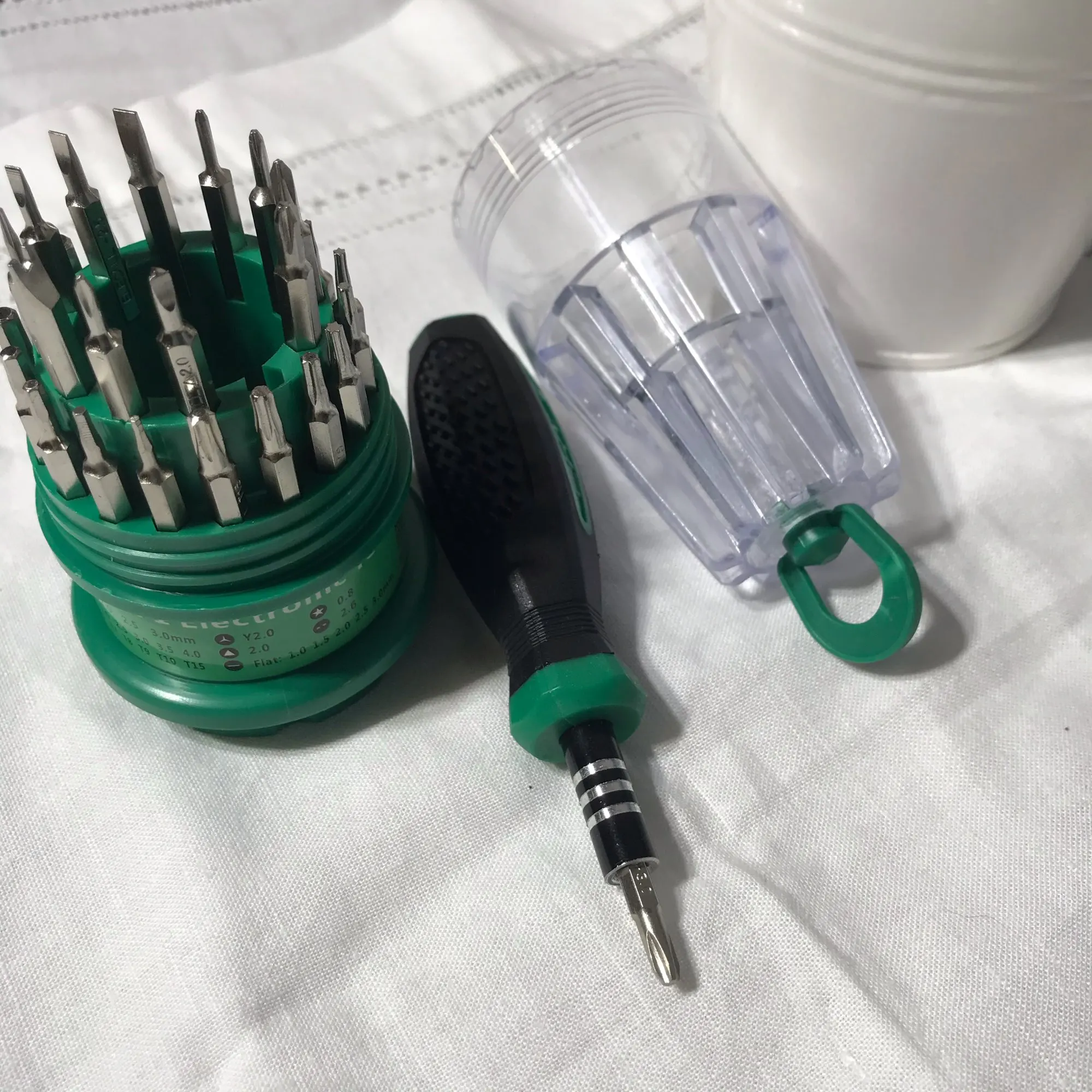 У меня был такой набор отверток, который был немного свободен в крышке. Но этот, кажется, действительно крепкий, я попробовал встряхнуть его вверх дном, чтобы увидеть, упадет Ли чехол, но это не так. Хорошая работа. Магнит также достаточно сильный, чтобы держать все биты. В целом, я очень доволен этим продуктом.
