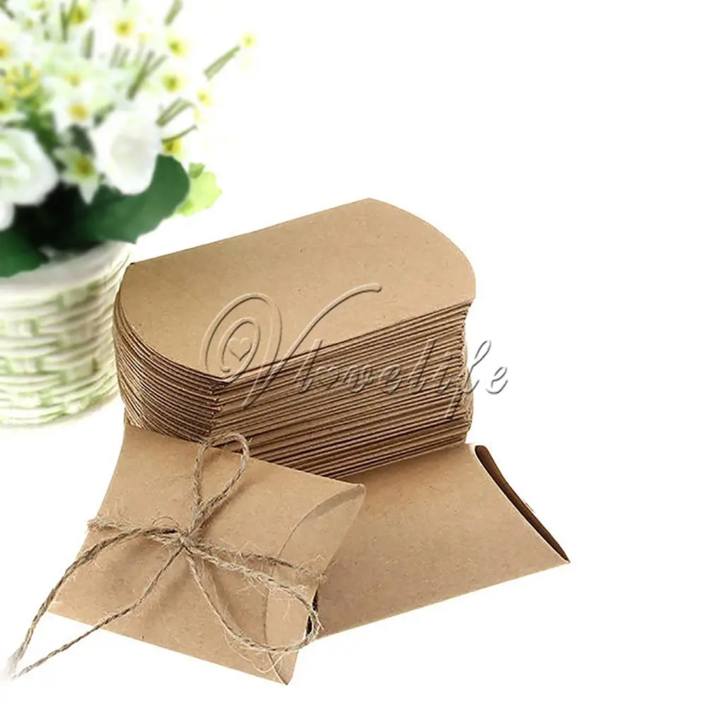 50p бумажная Подарочная коробка-подушка, коробки из крафт-бумаги для конфет, Подарочная коробка из ПВХ-бумаги, пакет, аксессуары для свадебной вечеринки, подарочная коробка