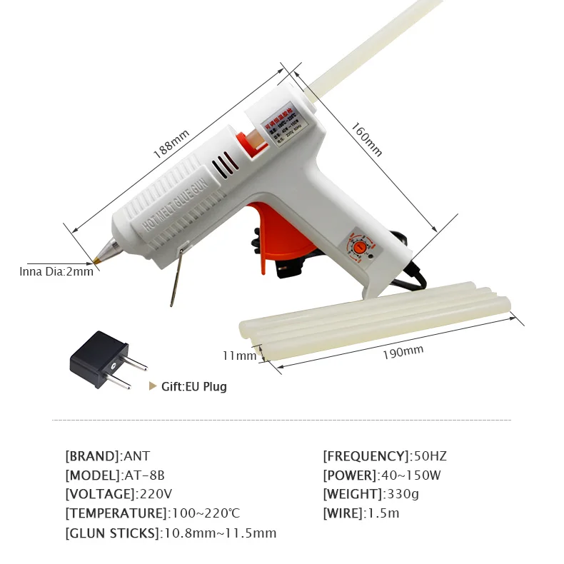 Пистолет для клея, 220 В, 40-150 Вт, с регулируемой температурой