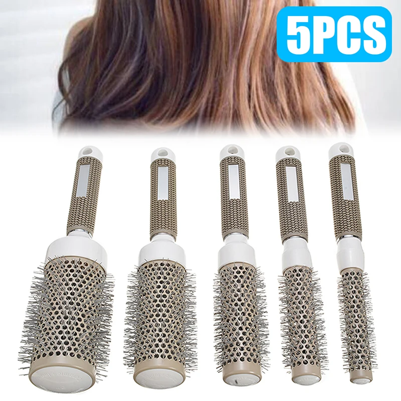 Профессиональная щетка для волос Nano, термальная Керамическая ионная круглая расческа Укладка волос парикмахерский салон для сушки и завивки волос, 5 шт.
