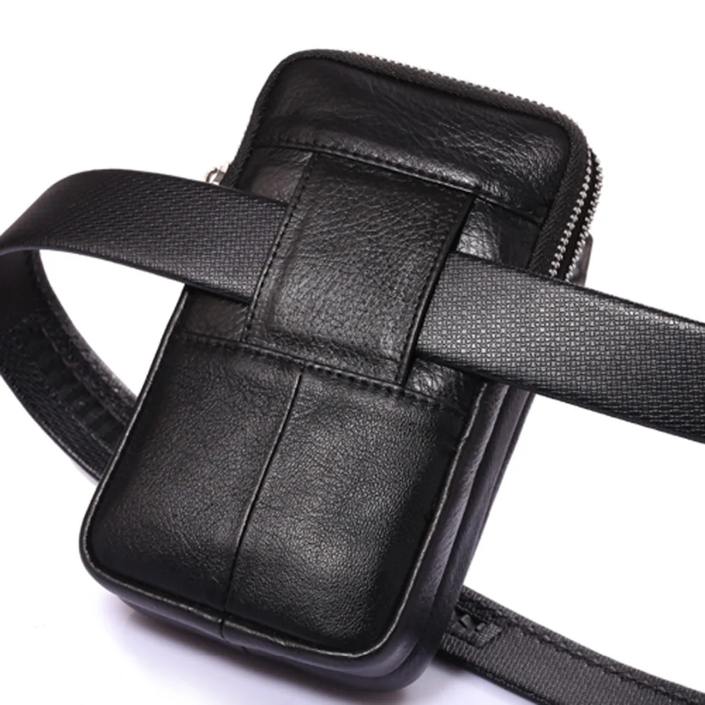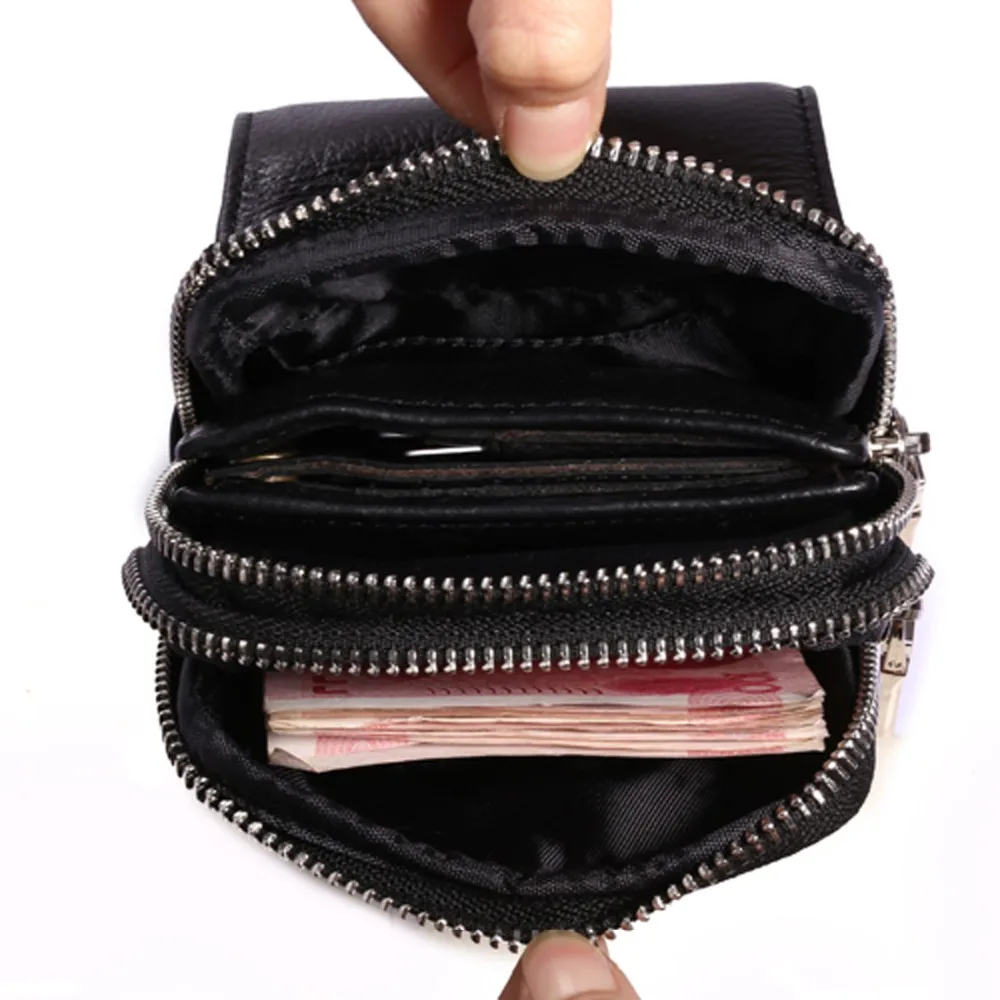 Мужской поясной кошелек из натуральной кожи, бумажник с двойной молнией, карман для телефонателефона, чехол для сигареты, портмоне, забавные мешки для денег