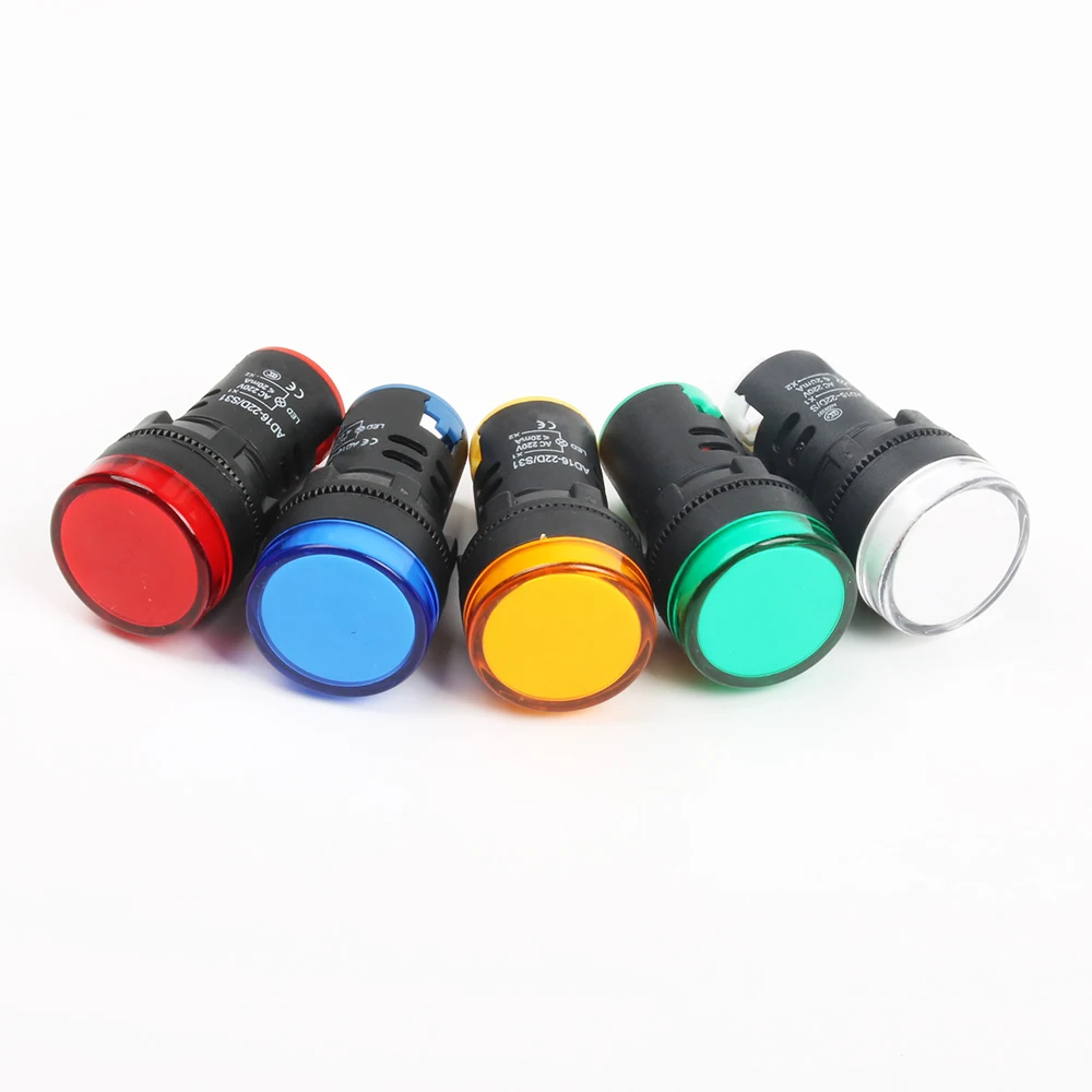 Сигнальная лампа 20 шт.лот, водонепроницаемая, AD16-22DS, 22 мм, 12 В, 24 В, 110 В, 220 В, 380 В, красные, синие, зеленые, белые, желтые лампы, кнопка 20 мА