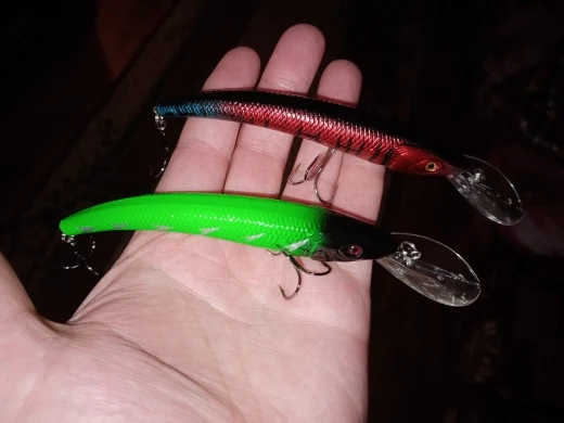 Очень качественный товар, для своей цены -просто супер. Краска покрыта лаком. Тройники острые, прочно смонтированы на воблере.