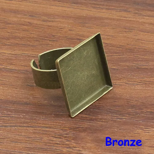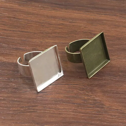 Подходит: 20 мм кольцо, металлическое квадратное пустое оправы, Безель, пустая основа для кабошона, кольцо для рукоделия, 10 шт.лот K05116