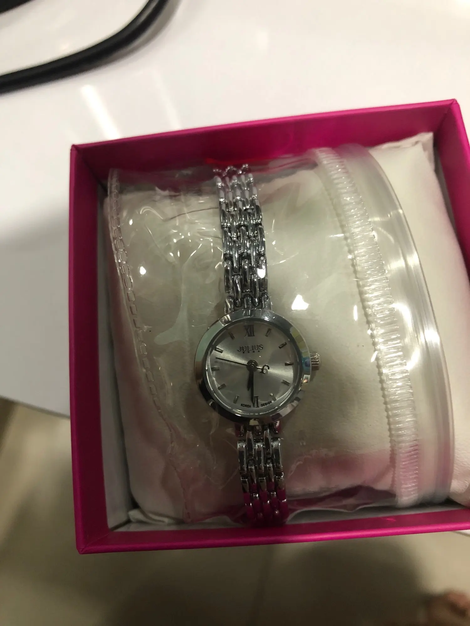 Красивые и маленькие часы. Лицо очень маленькое, удаляет две ссылки, чтобы соответствовать моему маленькому запястье. Идеально подходит для тех, кто имеет небольшие запястья и очень легко регулируется. Поставляется с инструментом для удаления дополнительных звеньев. Продавец был очень отзывчив на мои сообщения и быстро ответил на запросы. Часы отличного качества, я определенно рекомендую. Прибыла в Великобританию в течение 2 недель.