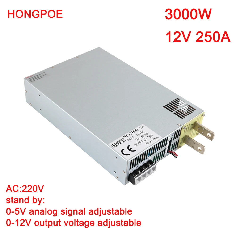 3000 Вт 12 в источник питания 0-12 в регулируемая мощность 0-5 в с управлением аналогового сигнала 220 В переменного тока в постоянный ток 12V250A Высокая мощность трансформатора светодиодный драйвер