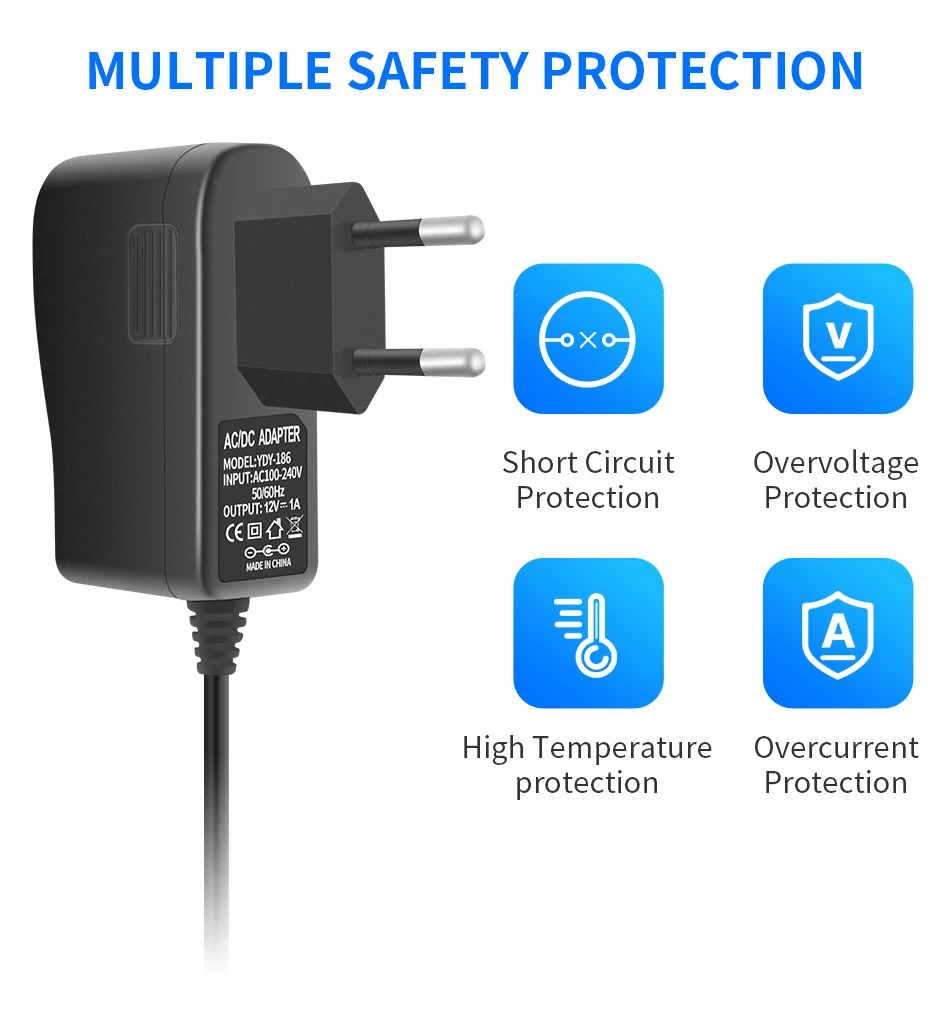 AC100-240V к DC 12V 1A 1000mA 12W адаптер питания 5,5x2,1 мм разъем размер 10 футов Шнур питания для камер безопасности