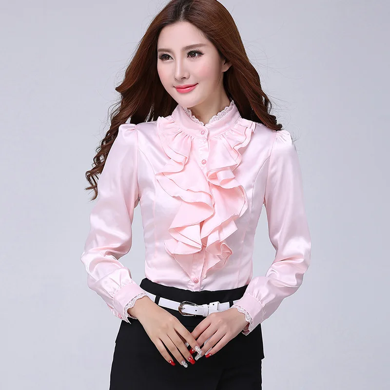 Женская атласная блузка, белая офисная блузка с рюшами, большие размеры, 2019