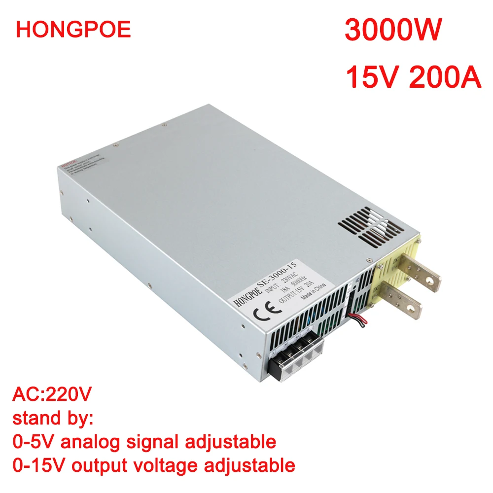 3000 Вт 15 в источник питания 0-15 в регулируемая мощность 0-5 в с управлением аналогового сигнала 220 В переменного тока в постоянный ток 15V200A Высокая мощность трансформатора светодиодный драйвер
