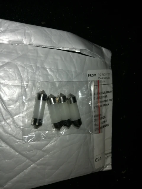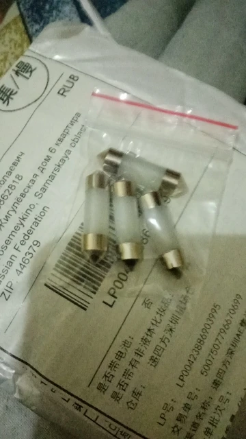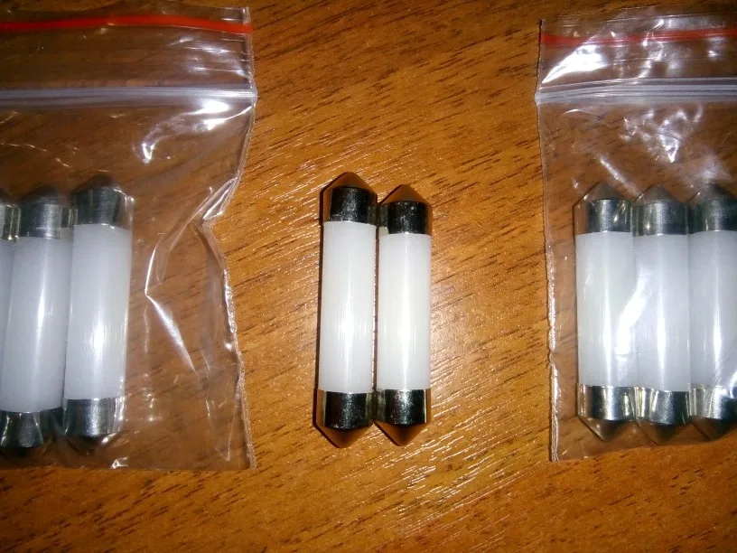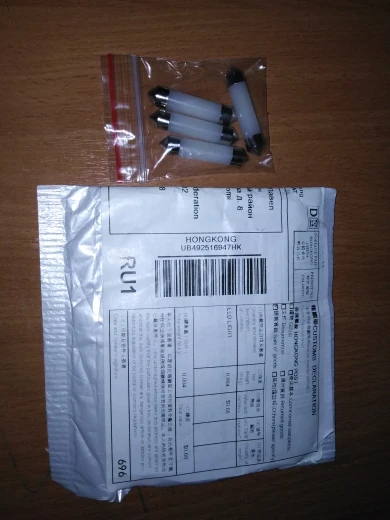 Доставка Пару недель...брал в двух вариантах 36 и 39...все работают,белый матовый цвет...Не очень ярко,но свет приятный равномерный....в плафоне внутри салона при выключенном состоянии слегка светится еле еле....в других местах типа подсветка номера такого не замечено... Лампы полярные.... Спасибо,за эти деньги норм! Позже дополню по мере перегорания