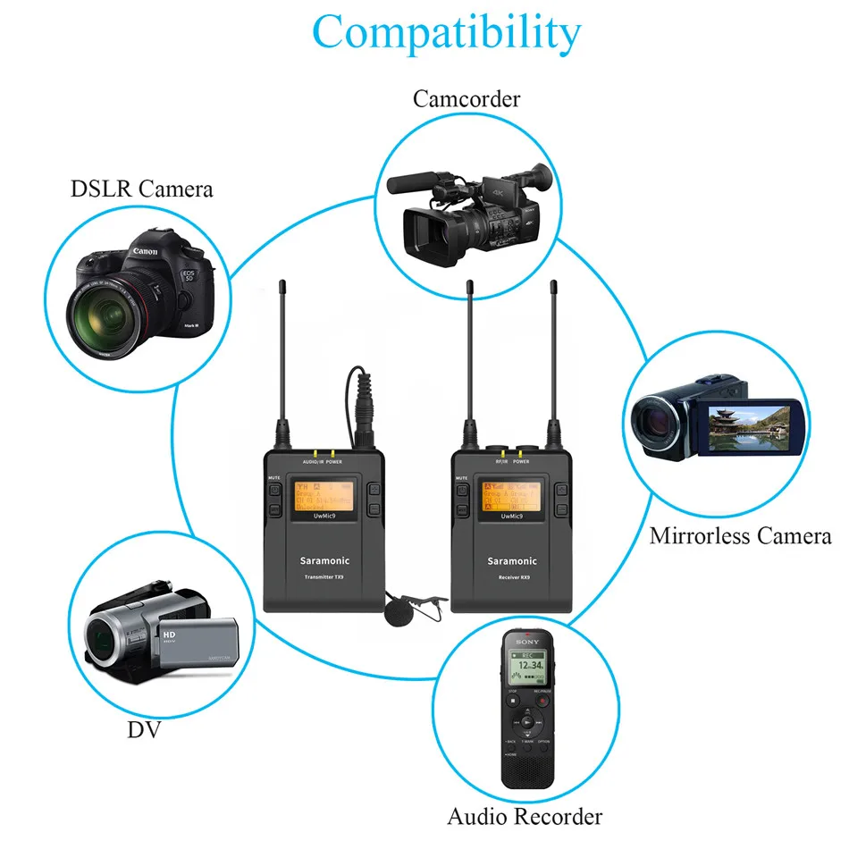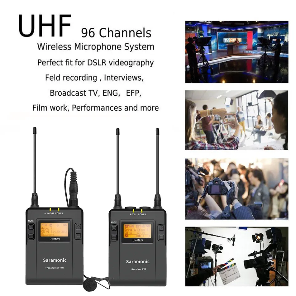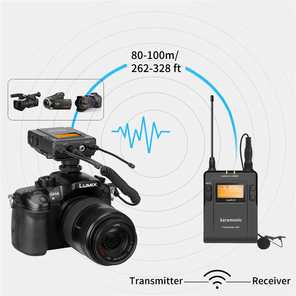 Saramonic UwMic9-RX9-это встроенный беспроводной приемник с камерой. Он оснащен широким переключением полосы пропускания RF и простым в считывании ЖК-дисплеем и инфракрасной синхронизацией между передатчиком и приемником.Оснащенный функцией автоматического сканирования, RX9 может автоматически искать доступную частоту передачи. Разъем для телефона позволяет в режиме реального времени контролировать приемник через наушники, особенно полезно для камер, которые не имеют выхода монитора.