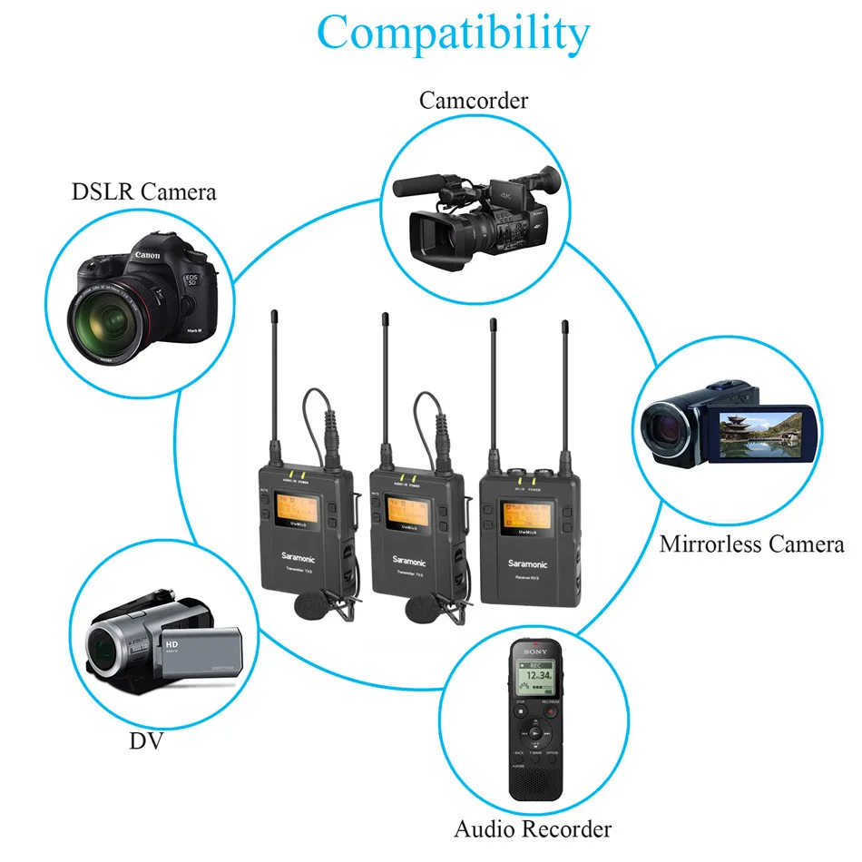 Микрофонная система предназначена для портативной беспроводной работы и может использоваться в нескольких средах для таких приложений, как DSLR видео, полевая запись, трансляция ТВ, сбор электронных новостей (ENG), интервью на месте и многое другое.
