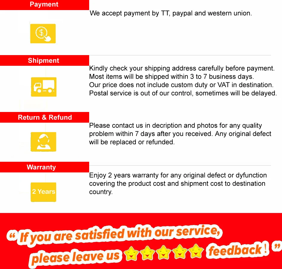 Контроль качества плавится во весь процесс, и наши продукты завершены под постоянным контролем и многоступенчатым испытанием. Мы очень гордимся нашим продуктом и обслуживанием. Мы уверены, что вы будете наслаждаться опытом с нами и оцените любую возможность ответить на любые вопросы или предоставить любую дополнительную информацию.