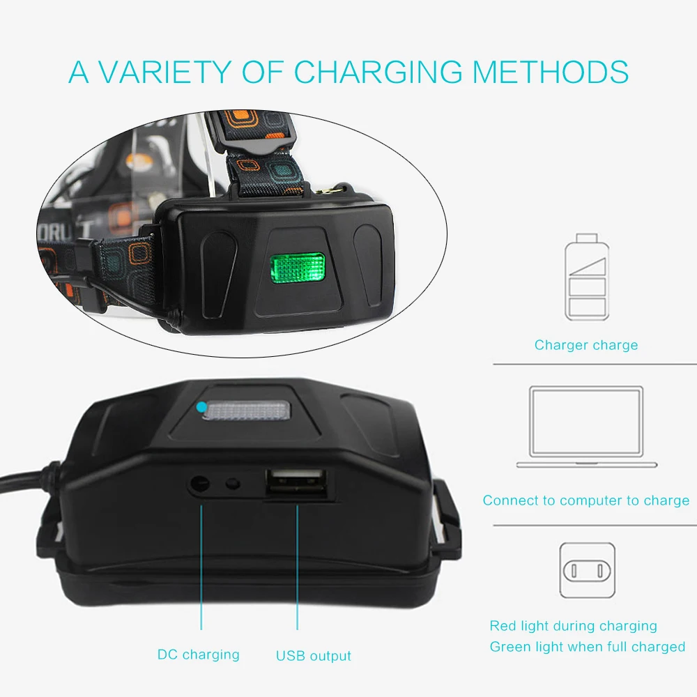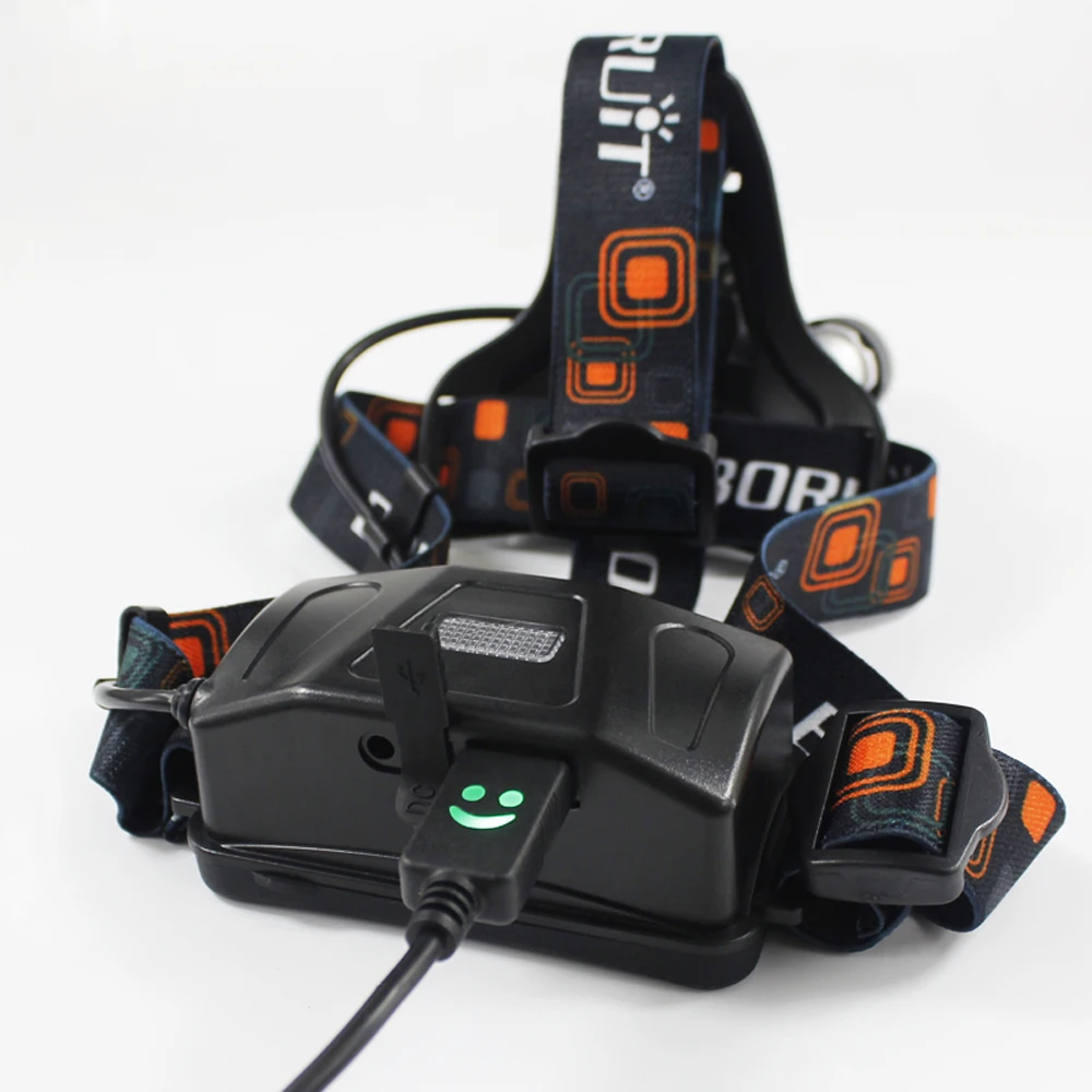 Головной фонарь BORUIT, светодиодный, 18650 лм, с аккумулятором и зарядкой USB