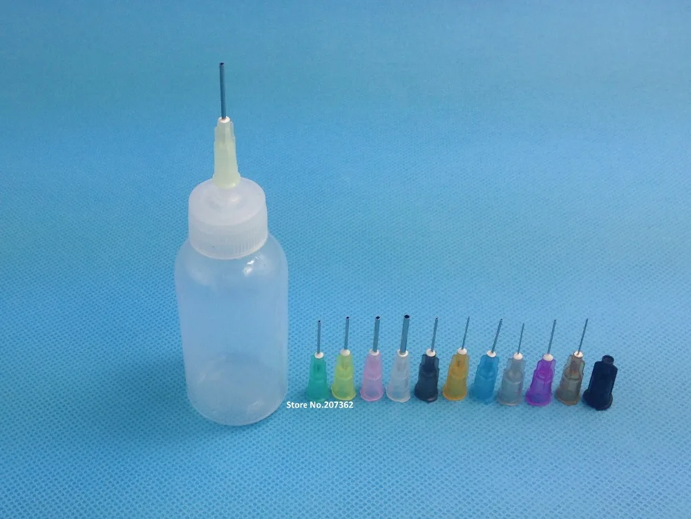 Доступно в 11 видах калибровочных размеров, иглы имеют 1/2 дюйма тупой канюли и luer-проскальзывают на адаптер бутылки.Пластиковая бутылка 30cc без градационных весов, она имеет промышленный стандарт luer slip adaper, чтобы принять иглы.