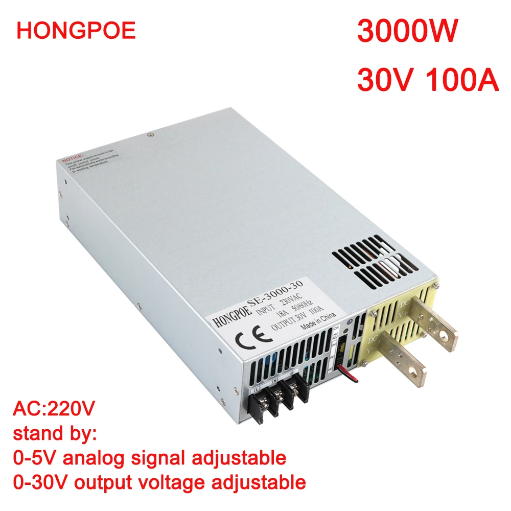 3000 Вт 30 в источник питания 0-30 в регулируемая мощность 0-5 в с управлением аналогового сигнала 220 В переменного тока в постоянный ток 30V100A Высокая мощность трансформатора светодиодный драйвер