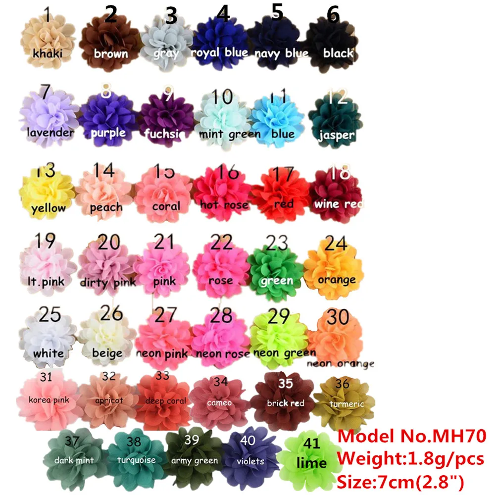 Цветы для волос шифоновые для девочек, 120 шт.лот, 40 цветов, неоновые Искусственные цветы с плоской задней поверхностью, аксессуары для волос для детей, MH70, 2,75 дюйма
