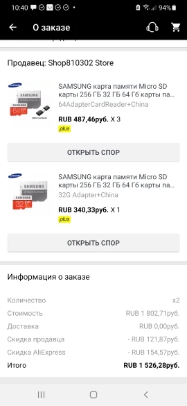 Страна: RU Capacity: 128G Adapter Ships From: Russian Federation Доставка: CN_OVERSEA_GD 29.11.2021