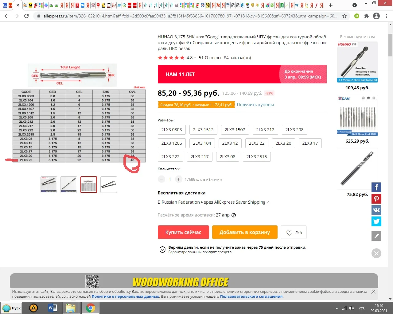по описанию показалось что 2 шт. фрезы. по факту 1 шт. фреза двух-заходная и это так хреново написано. в целом фреза нормальная, доставка очень долгая.